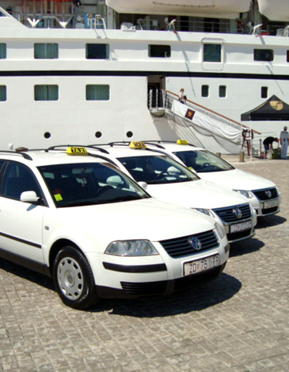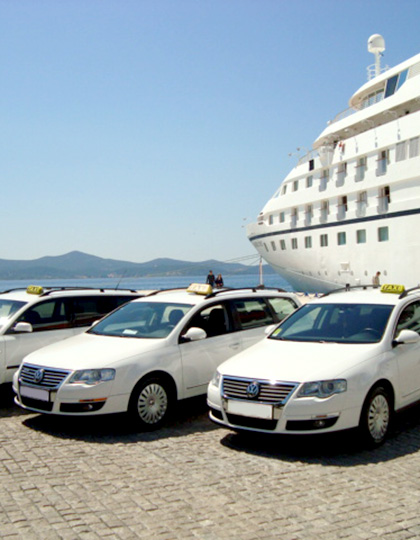Također vam možemo pružiti uslugu transfera od/do brodskih i kruzerskih pristaništa. Ako putujete brodom ili kruzerom za Zadar, dogovorite unaprijed taxi uslugu a mi ćemo vas dočekati na pristaništu. Česti posjetioci Zadra su kruzeri: Aida Aura, Seabourn Odyssey, Discovery, Atena i dr.